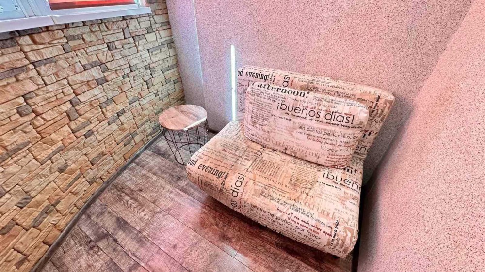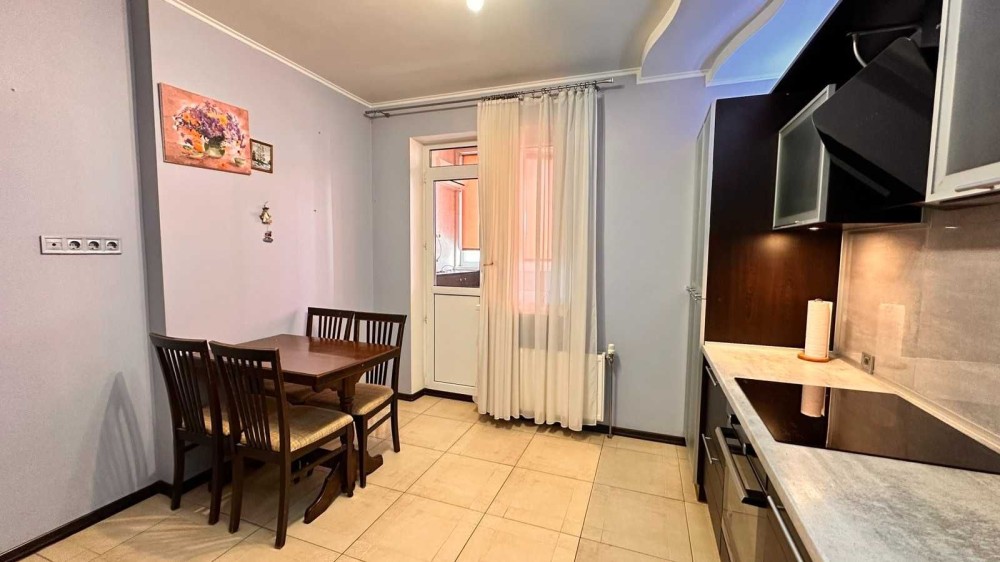 З кухні є вихід на засклену лоджію, є зона для відпочинку, тепла підлога, кондиціонер.