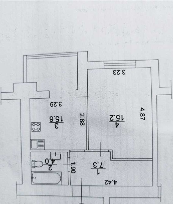 Повноцінна 1к квартира з вільним плануванням. Окремо кімната та простора кухня з лоджією.