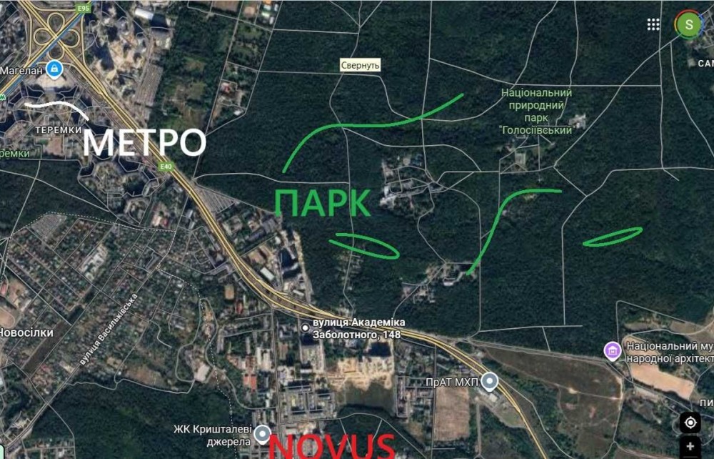 - Парк Феофанія для спорту і пронулянок у 10 хв,