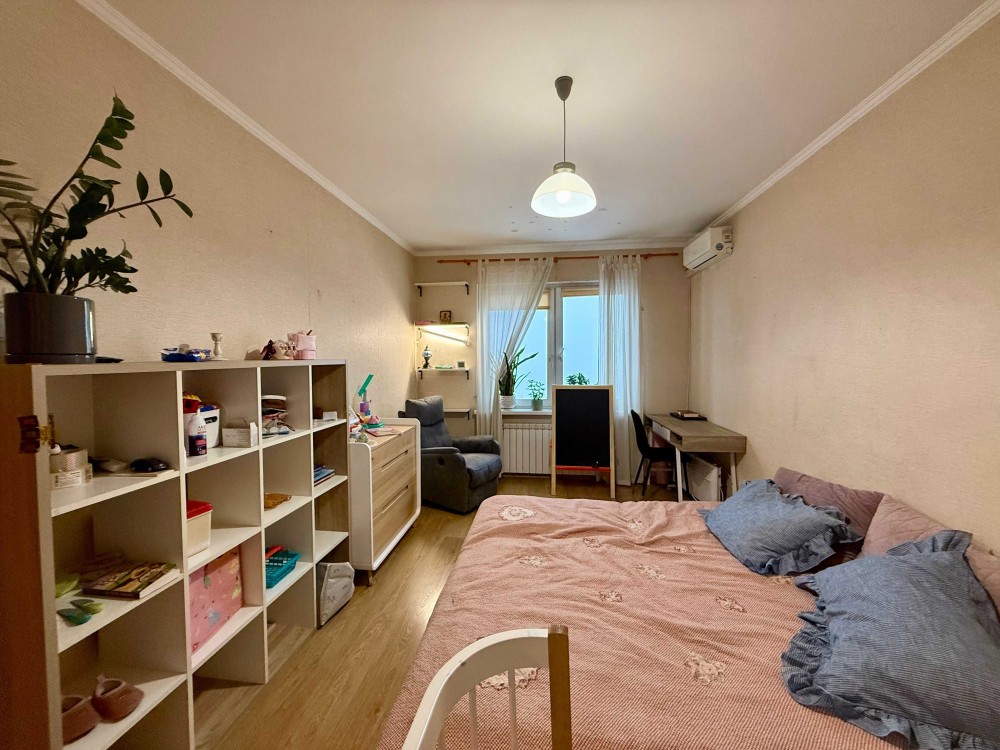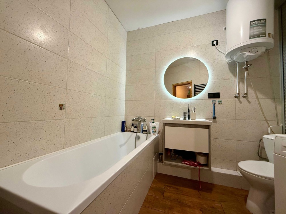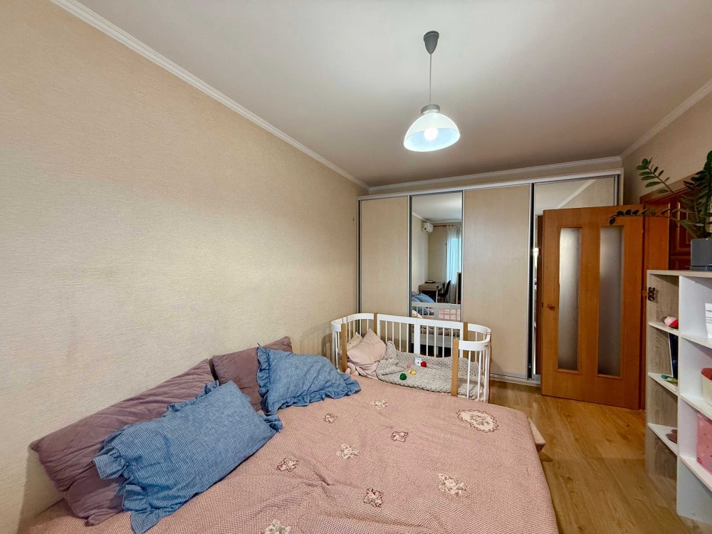 Квартира знаходиться на 22-му поверсі. Загальна площа 41 м.кв., планування роздільне: окрема простора кімната з великою шафою та ліжком, кухня з виходом на засклену лоджію, яку при бажанні можна використати у корисну площу кухні і санвузол з ванною. Є пральна машинка, бойлер на 80 л, кондиціонер у кімнаті. Генератора в будинку немає.