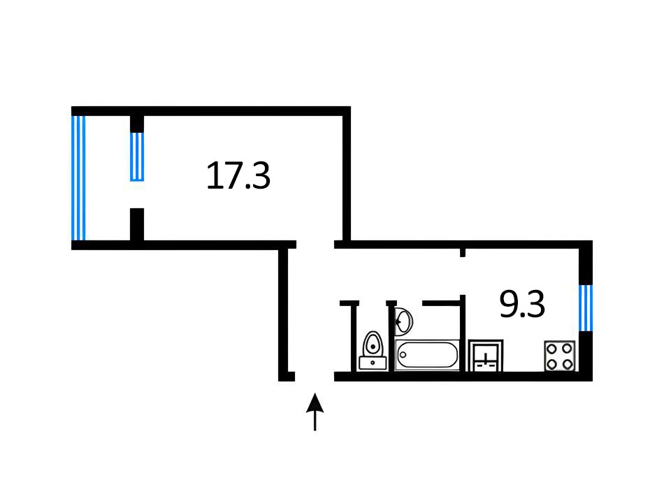 • Общая площадь 40.3 м2