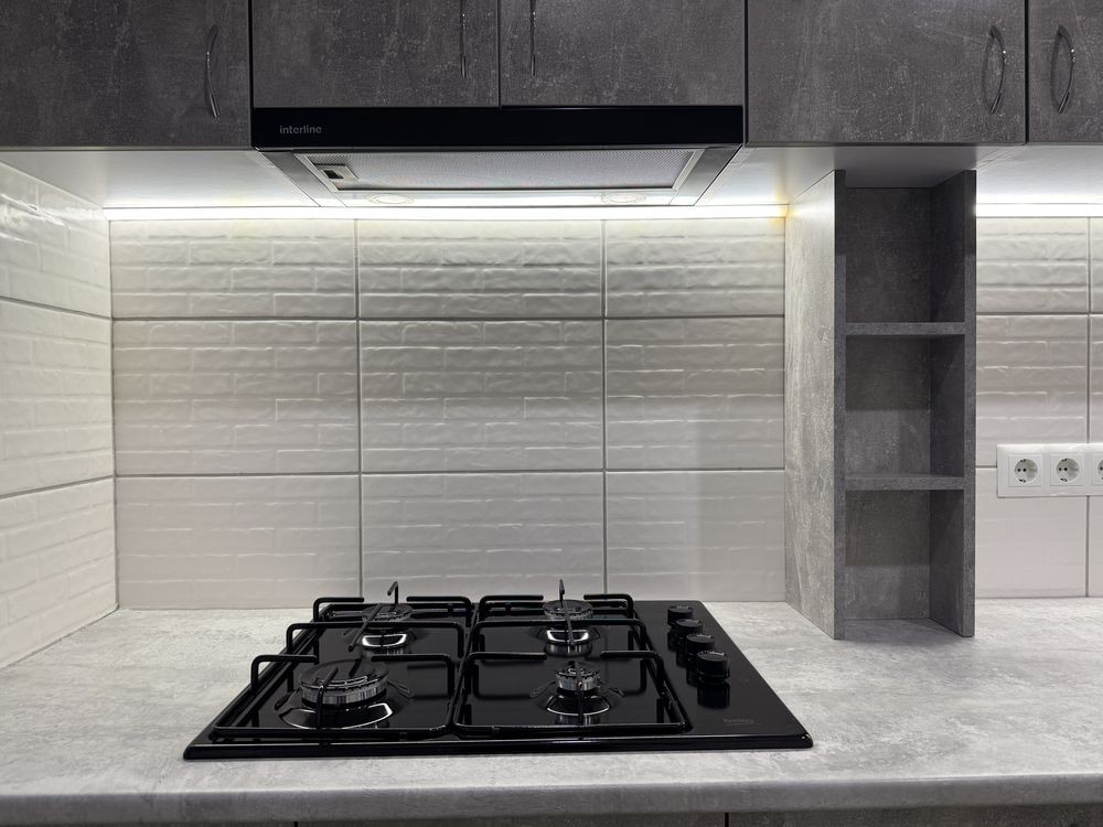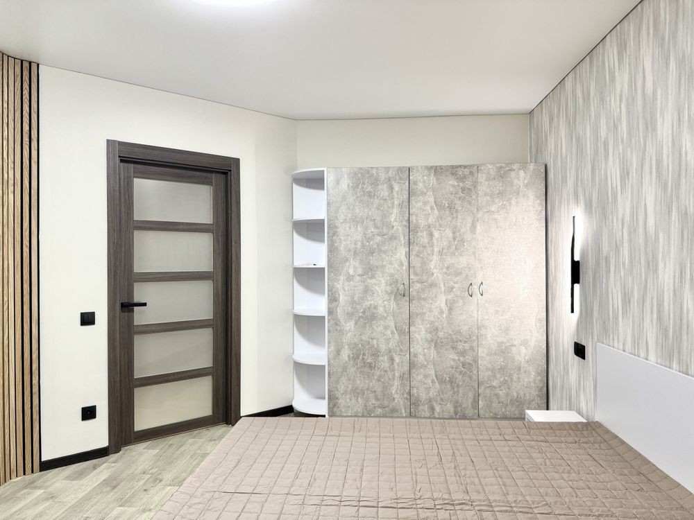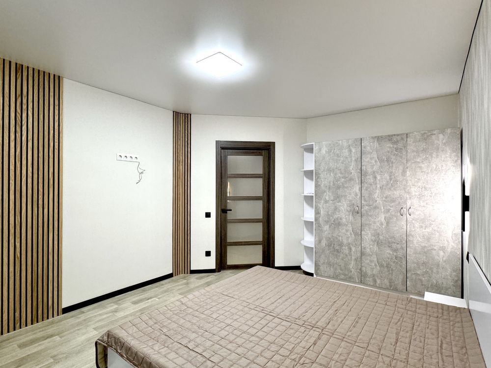 Навий ремонт, двоспальне ліжко, дві шафи, холодильник, пральна машина, газова плита.