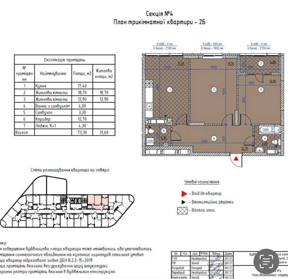 • Общая площадь 73 м2