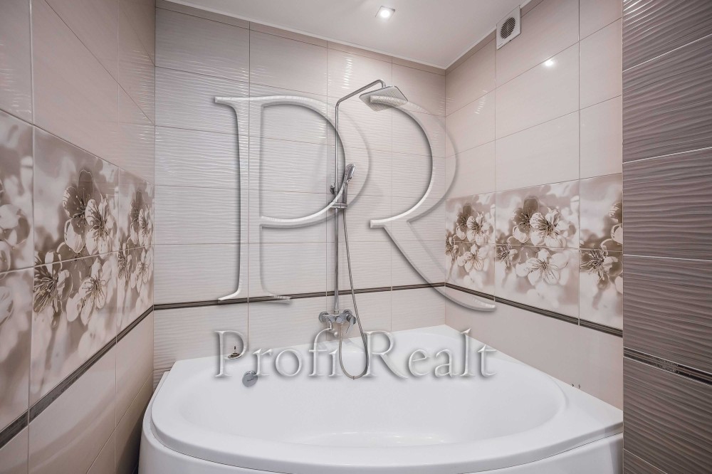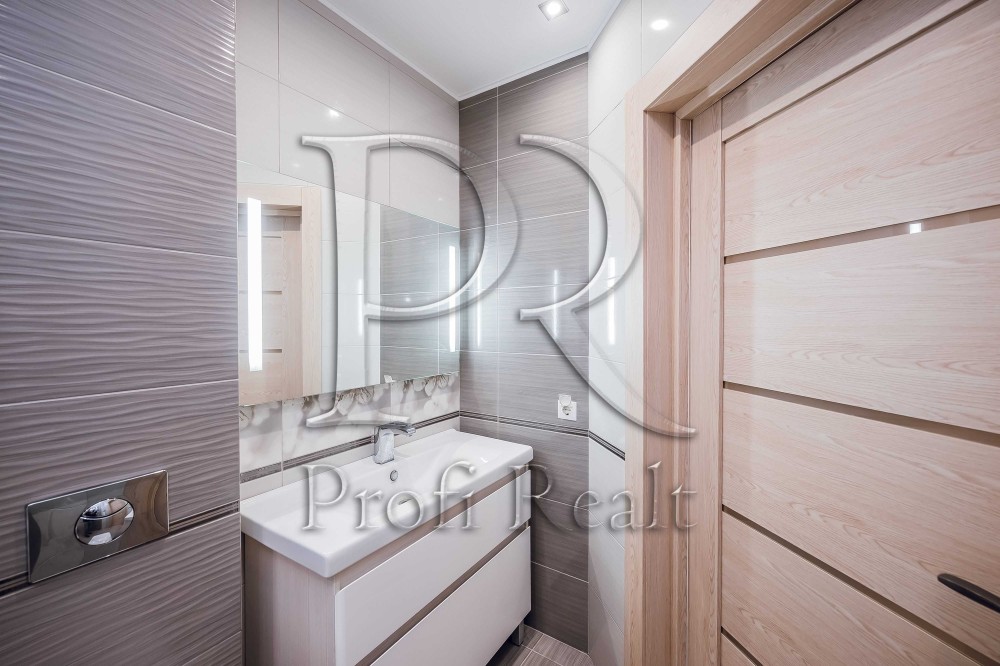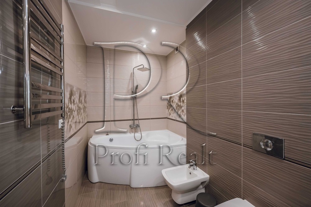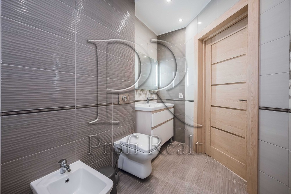 І однією із особливостей цієї квартири це велика ванна кімната, тут вдало розмістились і велика ванна, біде інсталяція з унітазом і зручний умивальник. Як Ви уже звернули увагу спальні кімнати без шкафів, для цього передбачена окрема повноцінна гардеробна кімната.