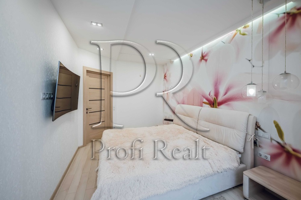 Другий рівень квартири це батьківська спальня з великим двох-спальним ліжком і зручним ортопедичним матрацом - декілька різноманітних підсвіток для створення комфортної атмосфери, і є можливість розмістити або б'юті зону для неї або комфортне робоче місце для нього.