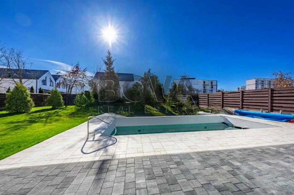 Територія доглянута й облаштована для комфортного перебування: хвойні та фруктові дерева, автополив газону, басейн 9×4 м із німецьким обладнанням та тепловим насосом.