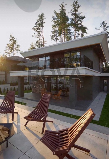 Пропонується до продажу унікальний сучасний будинок площею 230м², розташований на тихій лісовій вулиці у престижному передмісті Києва — Ходосівка, вул. Спортивна, 30.
