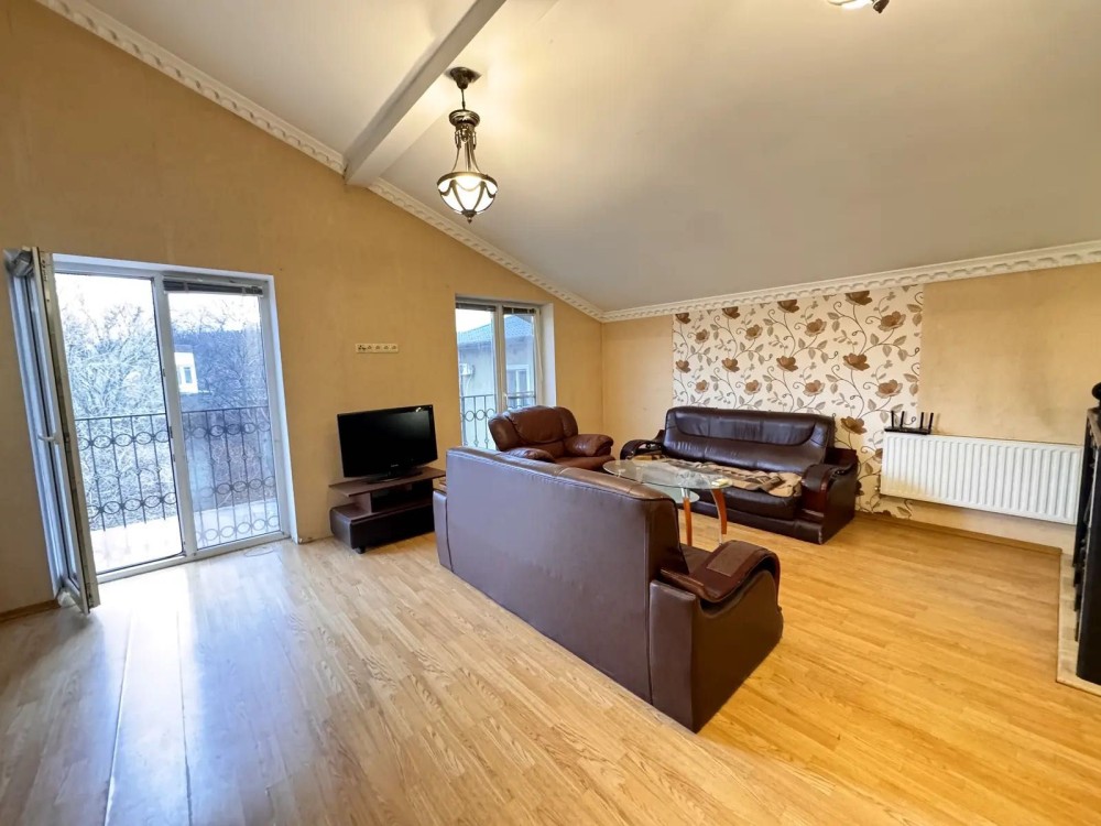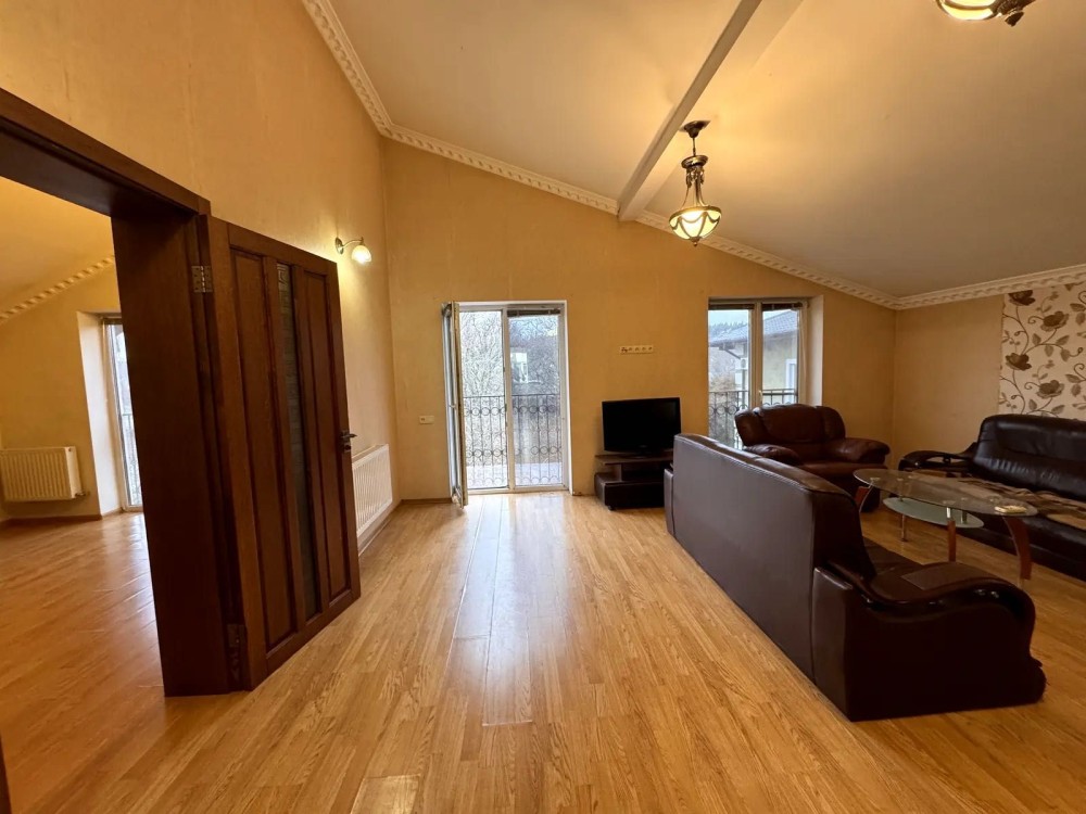 На другому 3 кімнати, велика вітальна просторий санвузол та балкон та територію біля будинку.