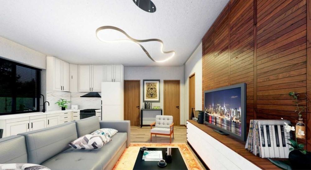 Простора кухня-вітальня 44м2 із виходом на терасу із зоною барбекю,