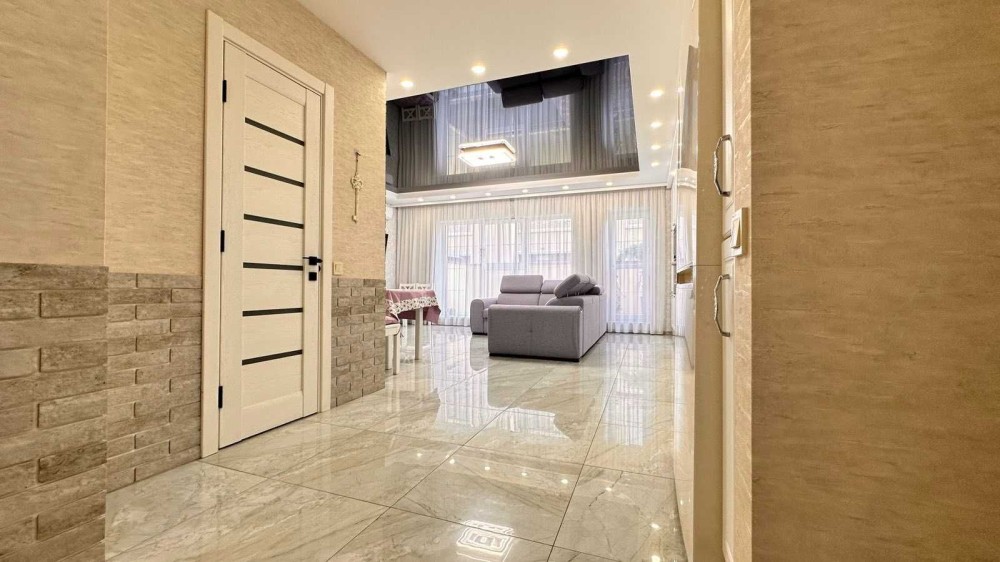 Будинок укомплектовано меблями та технікою: посудомийна машина, варильна поверхня, духова шафа, мікрохвильова піч, пральна машина з функцією сушки.