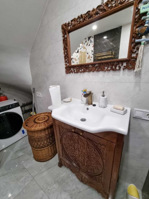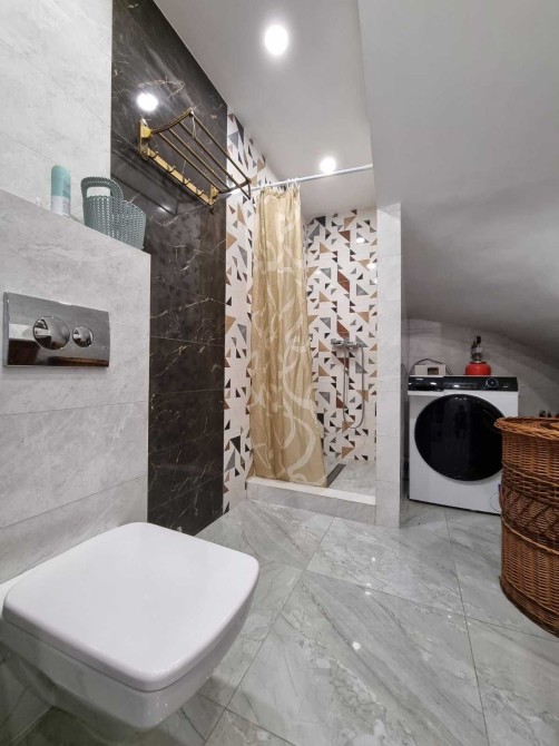 Будинок укомплектовано меблями та технікою: посудомийна машина, варильна поверхня, духова шафа, мікрохвильова піч, пральна машина.