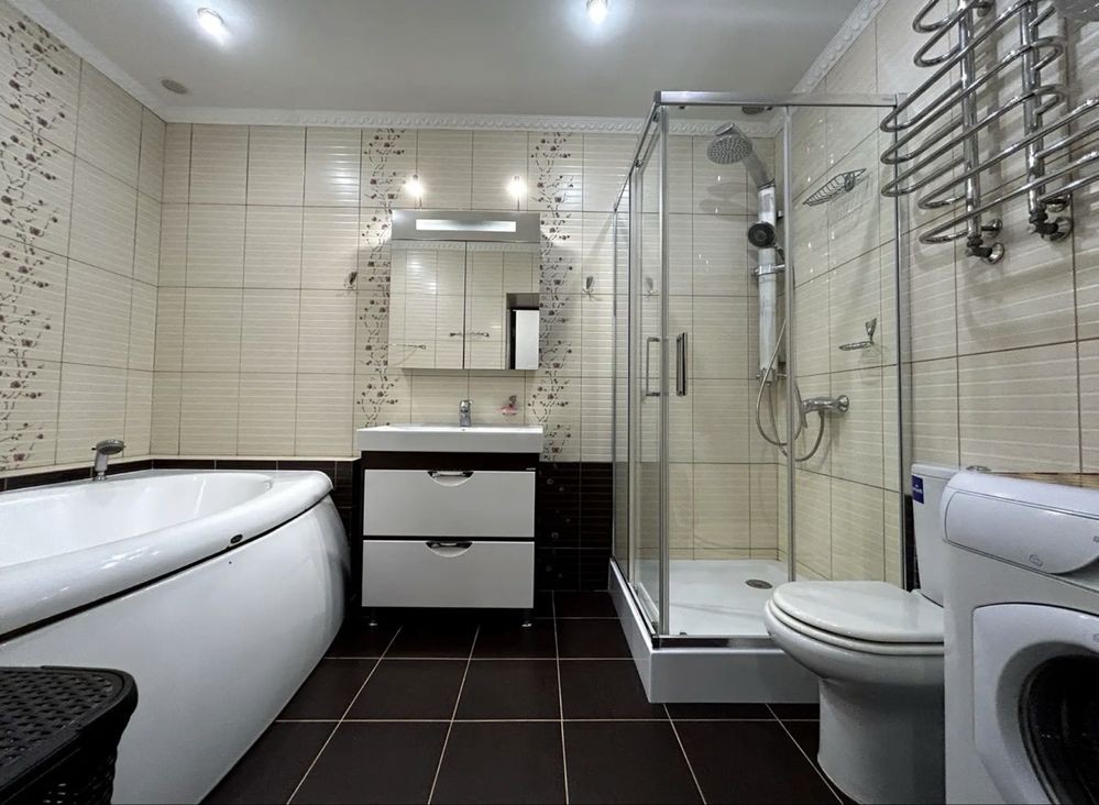 Усі меблі та техніка залишаються, встановлений кондиціонер, холодильник, пральна машина, бойлер, духова шафа, варочна поверхня, повністю облаштована гардеробна із сейфом, сигналізація.