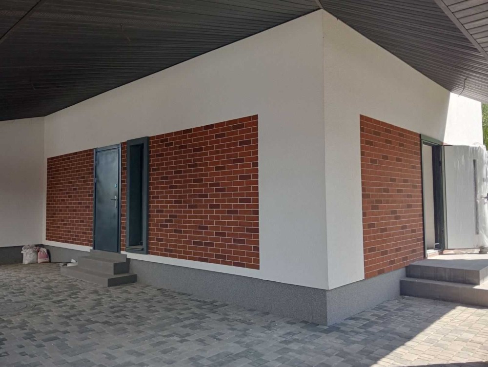 Фасад - декоративна штукатурка, клінкерна плитка