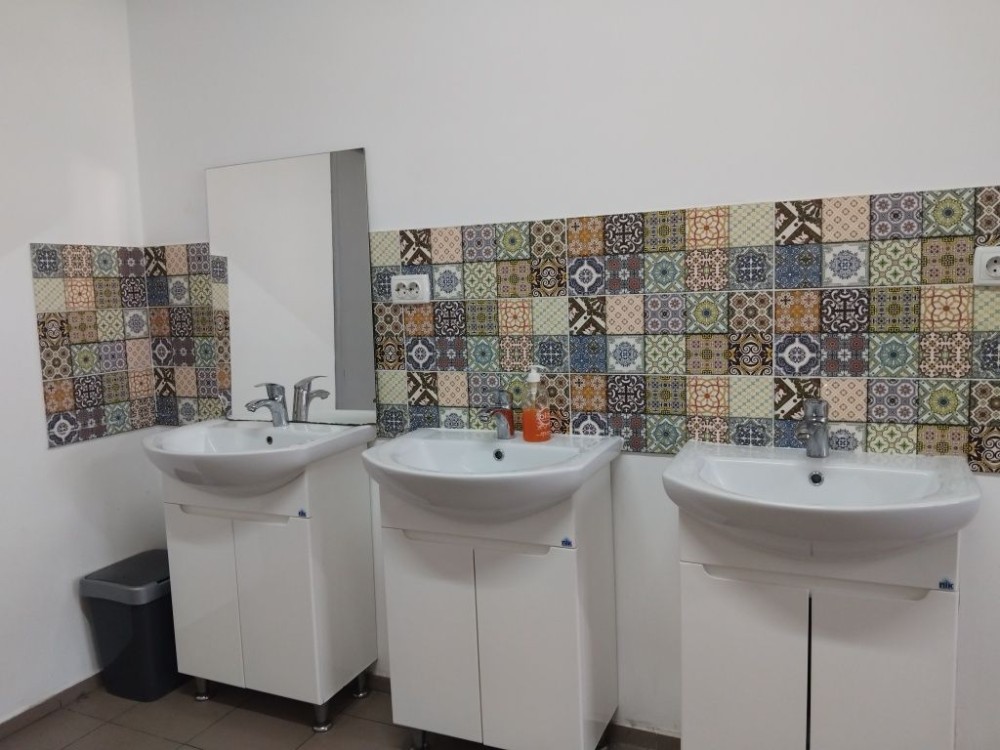 Душ ,пральна машина та кухня на поверсі