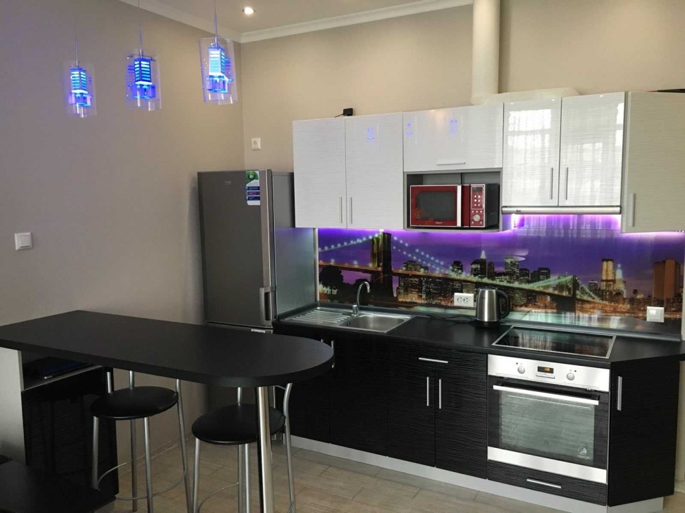 Квартира студио: в комнате гармонично сочетаются зона отдыха с раскладывающимся ортопедическим диваном с зоной кухни, санузел совмещен, теплые полы. Для комфортного проживания квартира полностью оснащена всей необходимой бытовой техникой мировых производителей: стиральная машина автомат, холодильник, варочная поверхность, духовой шкаф, микроволновая печь, бойлер, плазменный телевизор, спутниковое ТВ, WiFi, кондиционер.