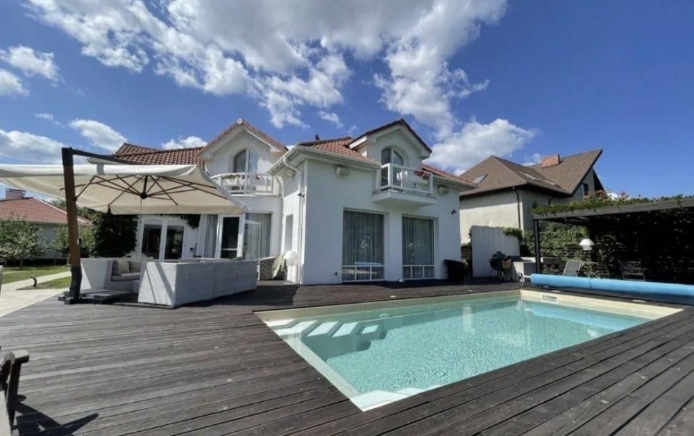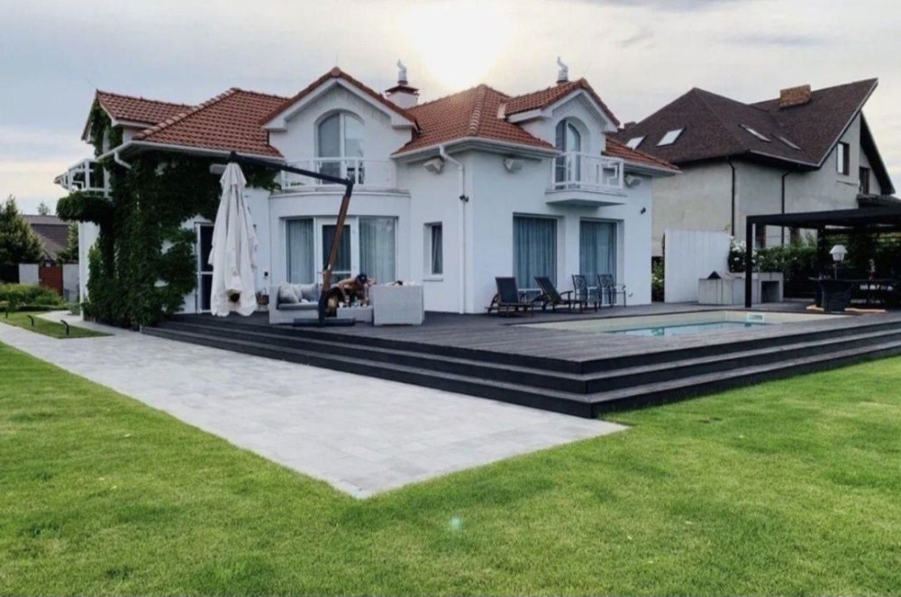 Будинку 7 років, зроблено сучасний дизайнерський ремонт, шикарний двір 40 соток з квітами, ландшафний дизайн з рослинами, які доглядають садівники. На території є окремий будиночок охорони/домробітниці. З двору є вихід до річки, яка впадає у Дніпро. Влітку зручно кататися на водному скутері У дворі басейн з підігрівом та протитечією, для занять плаванням (управління системою через мобільний додаток) Є вольєр для великого собаки. Загальна площа будинку 360 кв.м, територія ділянки – 40 соток з виходом до води. 1 поверх: - зал з каміном - кухня - санвузол - гостьова спальня - гараж на 2 машини - Технічне приміщення 2 поверх: - санвузол - спальня з каміном - кабінет - вбиральня 60 кв.м. У будиночку охорони є все необхідне для постійного проживання на території У дворі зручно гуляти з коляскою, дуже чисте повітря, тиша, спокій, спів пташок. Альтанка, зона барбекю Для гостей є 8 місць для паркування. Підлога скрізь з підігрівом, система "Розумний дім", відеокамери, тривожна кнопка, сигналізація, два сейфи, сейф для зброї. Автоматична система поливу газону "Hunter" Генератор на 14 кВт, що безперебійно може працювати 5 діб. Біля будинку розташовані ресторан "Чорноморка", супермаркет "Ля Фора", тренажерний зал "Wish Club" з басейном