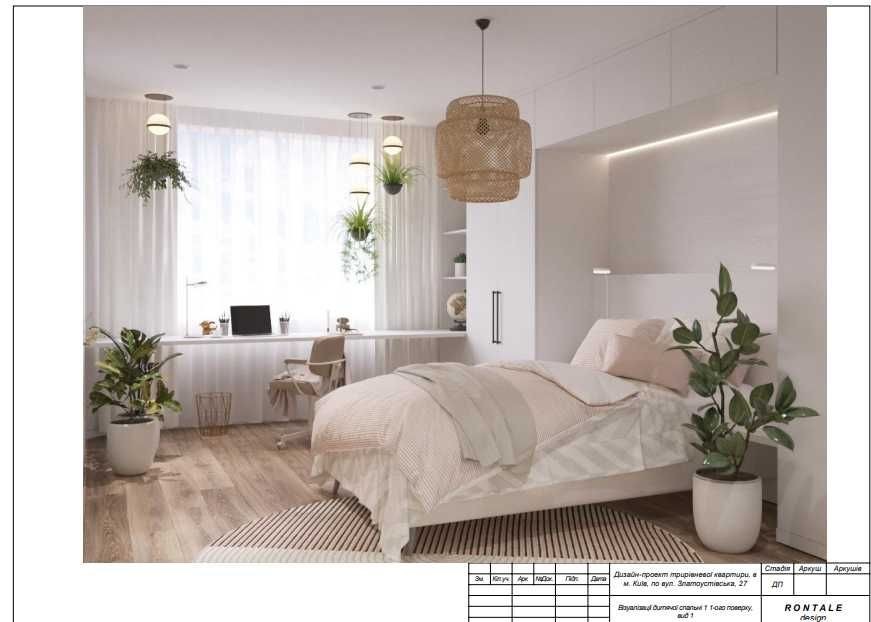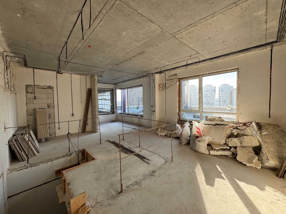 Готовий дизайн-проект (іде в подарунок), розпочато ремонт - зроблено перепланування, розведено електрику, трендові гвинтові бетонні сходи без поручнів, закуплено більшість оздоблювальних матеріалів - італійська плитка, змішувачі прихованого монтажу з терморегуляторами (Німетчина), сантехніка, кварцвініл та багато іншого - усе згідно проекту та уже занесено в квартиру, цей етап ремонту ще дозволяє внести свої корективи та розставити свої акценти.