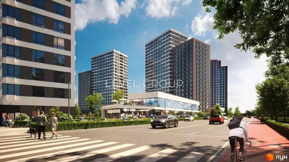 Закрита прибудинкова територія, що обмежує доступ сторонніх. На територіі житлового комплексу розміщені дитячі та спортивні майданчики, вело роликові доріжки