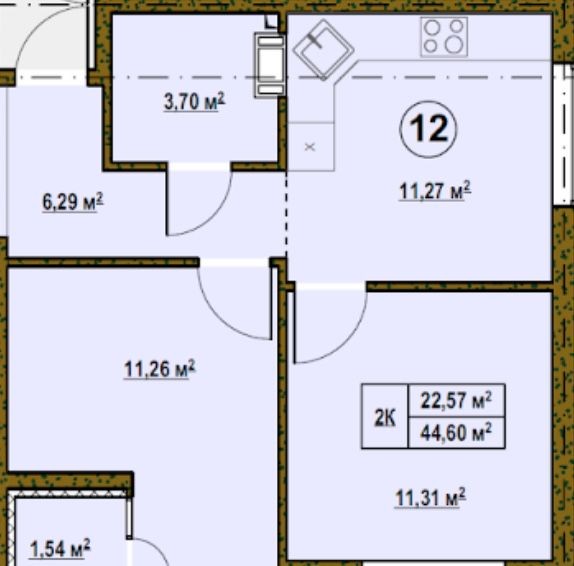 • Общая площадь 44.6 м2