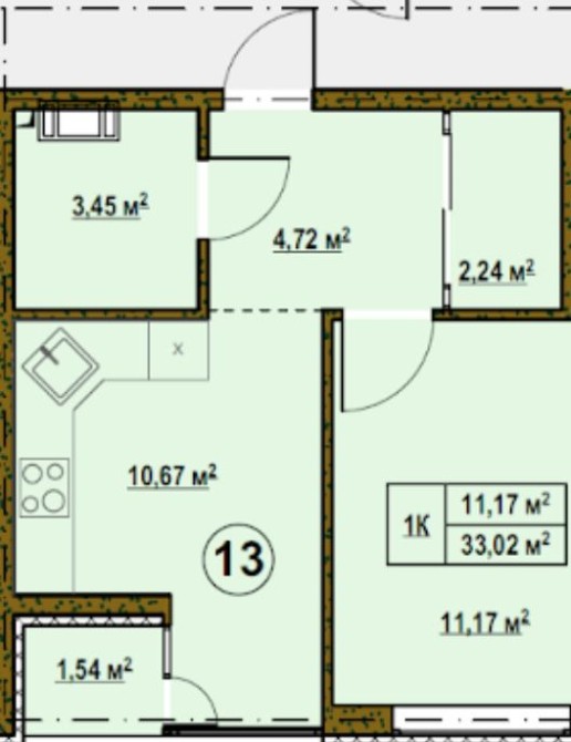 • Общая площадь 33.02 м2
