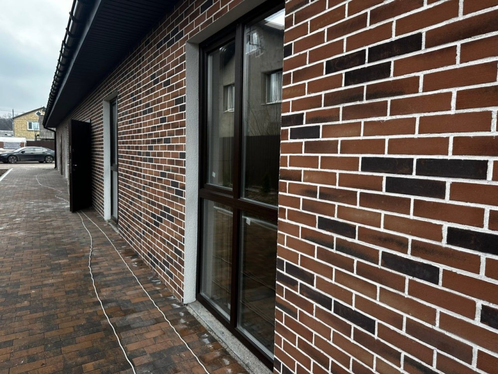 Стіни керамоблок, утеплення пінопласт, облицювання клінкерна цегла.