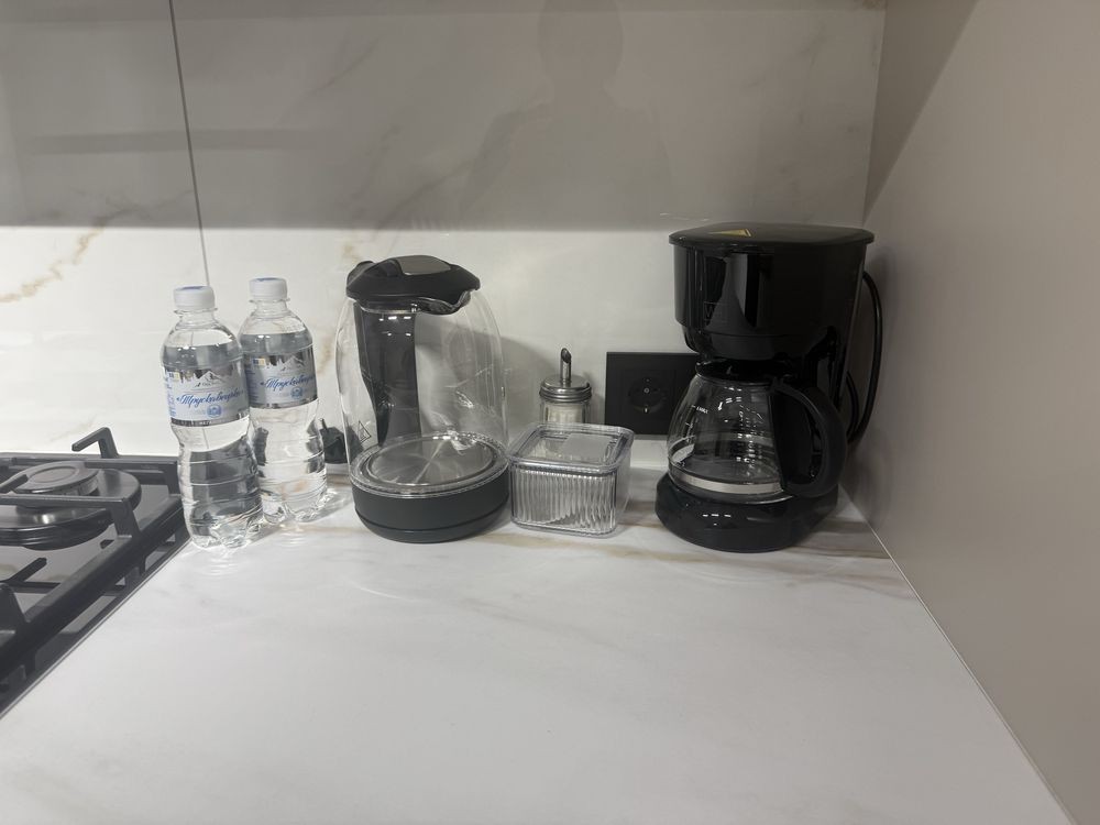 • Приємні бонуси для гостей: кава, чай, крупи для сніданку, одноразові щітки та паста, тапочки, мило, гель для душу, шампунь, ватні диски та палички.