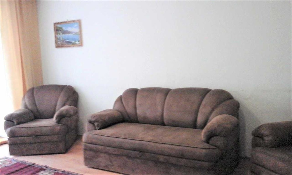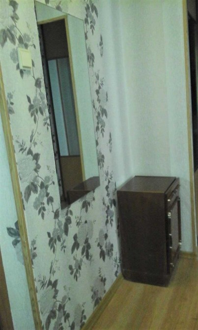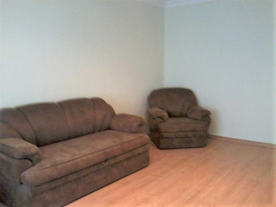 В комнате застекленный балкон, диван, 2 кресла, тумба. Шкаф-купе в коридоре.