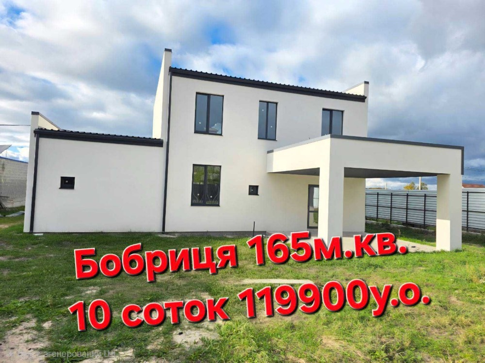 Продаж будинку заг. площа 165м.кв. 10 соток ділянка - Бобриця Білогородська ТГ, поруч з річкою Ірпінь, мальовниче тихе, місце. Планування : 4 спальні, кухня-студія з виходом на терасу, два санвузла, кладовка. Крита парковка для авто та техприміщення - окремий вхід. Комунікації: світло 16кВт, свердловина 30м, септик з перливом 4 куба. Газоблок 300мм, утеплення пінопласт 100мм, дах утеплення мінвата 200мм. По периметру забор, відкатні ворота. Вулиця обжита, закритого типу (шлахбаум), до зупинки 5 хв пішки. В селі є ліс, велике озеро, місця для відпочинку, парк. Ціна під чистове оздоблення 119 900у.о. без комісії торг можливий