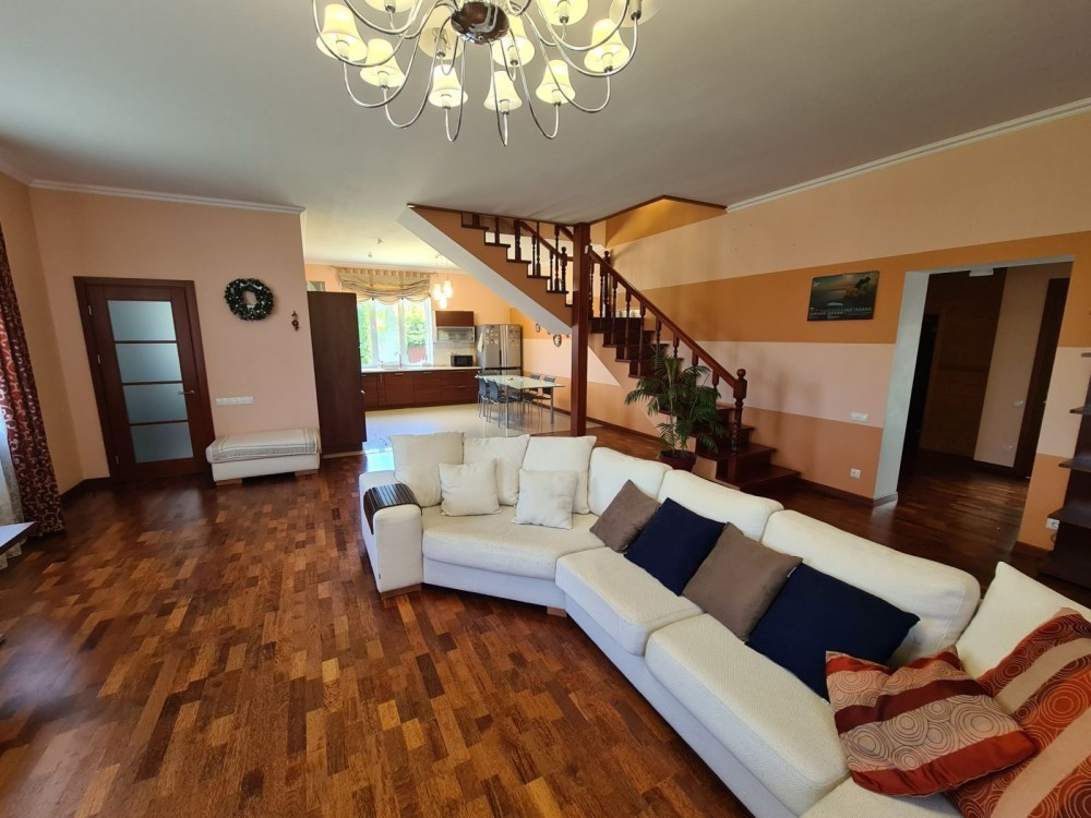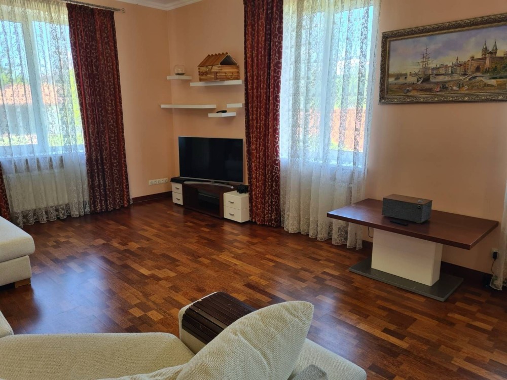Боярка (с. Малютянка), район котеджної забудови (за вул.Героїв Танкістів), сучасний будинок 300 м2, 15 соток, ділянка з ландшафтним дизайном, кухня-вітальня, сауна, кабінет, 3 спальні, з них 2 дитячі, , 3 сан .вузла, 26 км від Києва, ліс та озеро поруч, прекрасний будинок для комфортного проживання, повністю укомплектований, сад, що плодоносить, будинок повністю обладнаний меблями та технікою високої якості! Довгостроково.