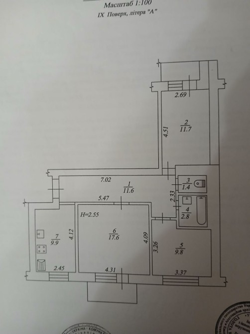 Загальна площа квартири 67,2 м2. Кімнати окремі: 10, 12 та 18 м2.