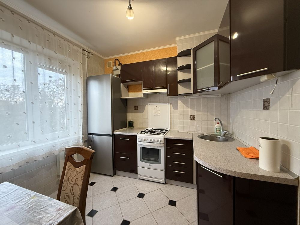 Пропонується в оренду затишна однокімнатна квартира на Юності, по вул. Курчатова. Зручний 2-й поверх 4-х поверхового будинку, є світлий засклений балкон. Житло укомплектоване меблями та технікою для комфортного проживання – диван(розкладається), шафи для зберігання речей, кухонні тумби, обідня зона. З техніки є телевізор, wi-fi, плита, духова шафа, холодильник, пральна машина. Приємним бонусом є газова колонка! Інфраструктура району добре розвинена – в пішій доступності магазини, супермаркети, аптеки, відділення пошти, школа, дитячий садочок, дитячий майданчик, також зупинка громадського транспорту в 5-ти хвилинах від будинку! Дзвоніть та домовимось на показ!