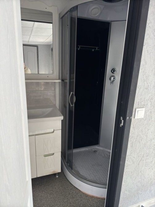 Всередині є туалет ( входить , унітаз, душова кабіна, умивальник з тумбою та бойлер) , зала кухня вже з вмонтованою електричною плитою, та стільницею!