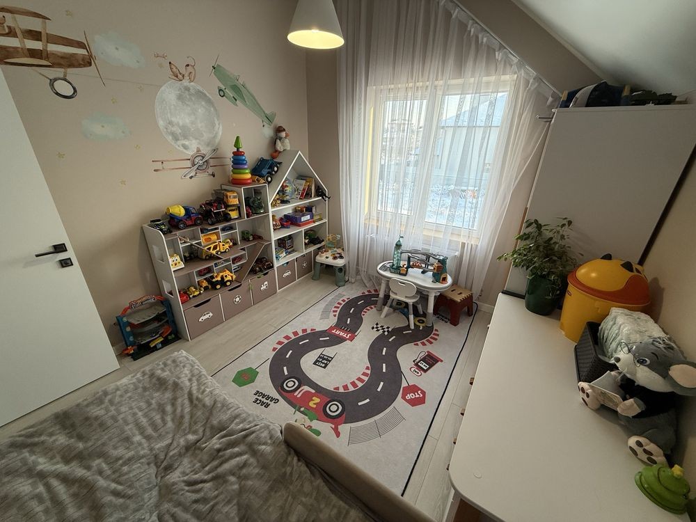 В обох дитячих кімнатах є ліжко з ортопедичним матрацом та нішею для речей , шафа, комод .