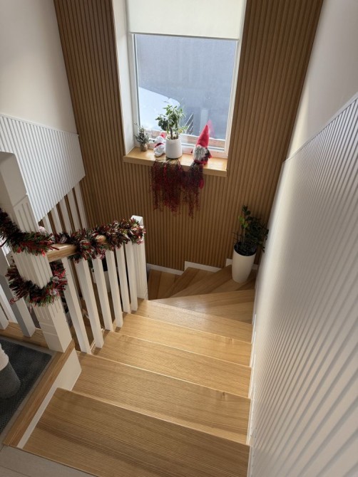 оброблені деревʼяними рейками в сучасному стилі .