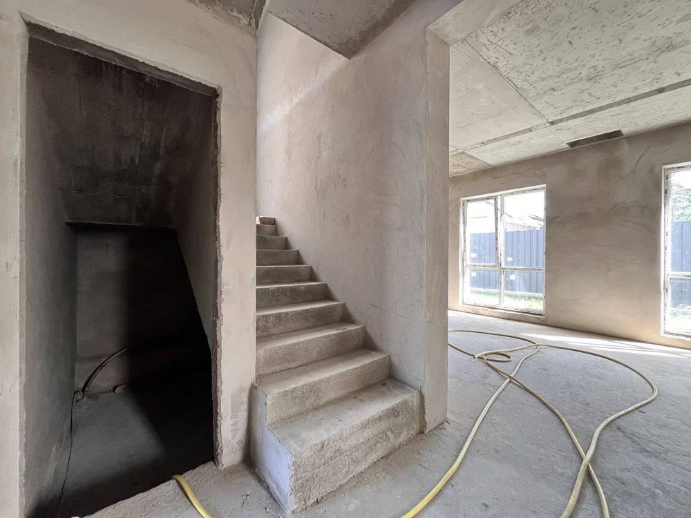 В будинку зроблена цементно-піщана штукатурка стін.