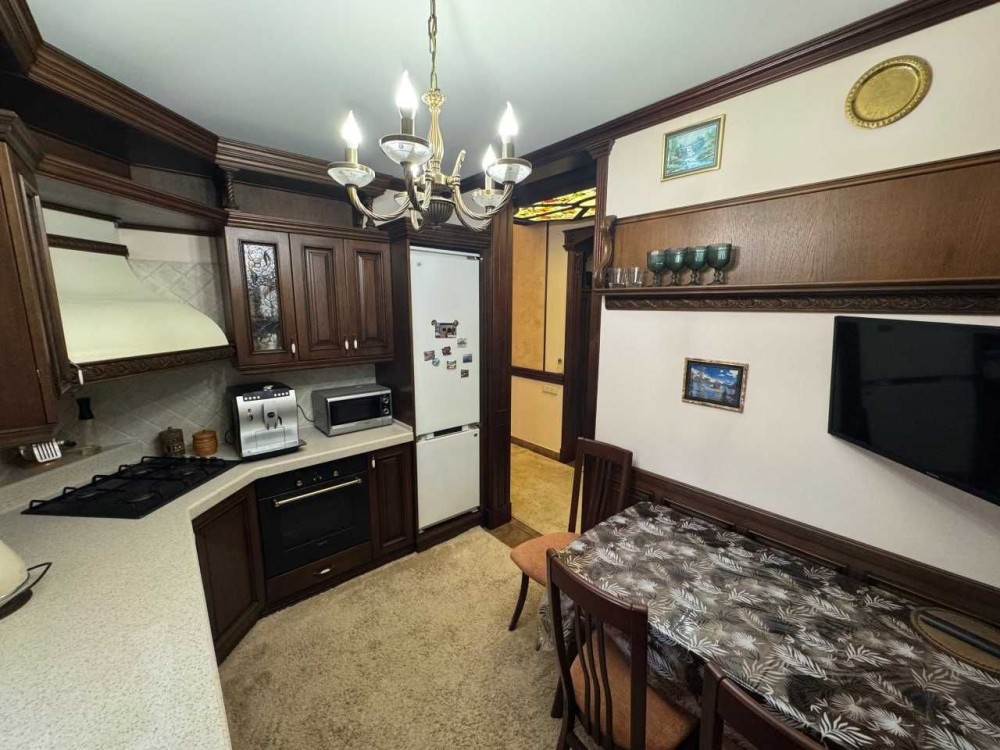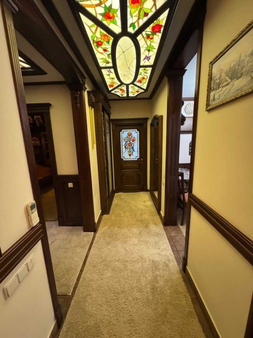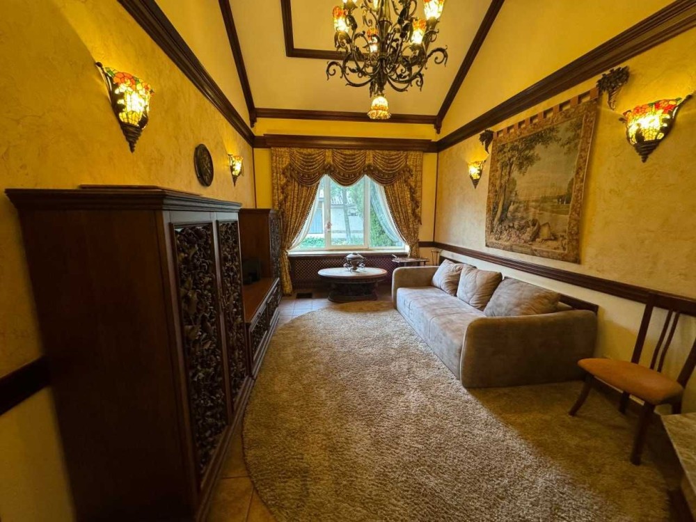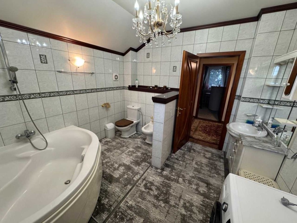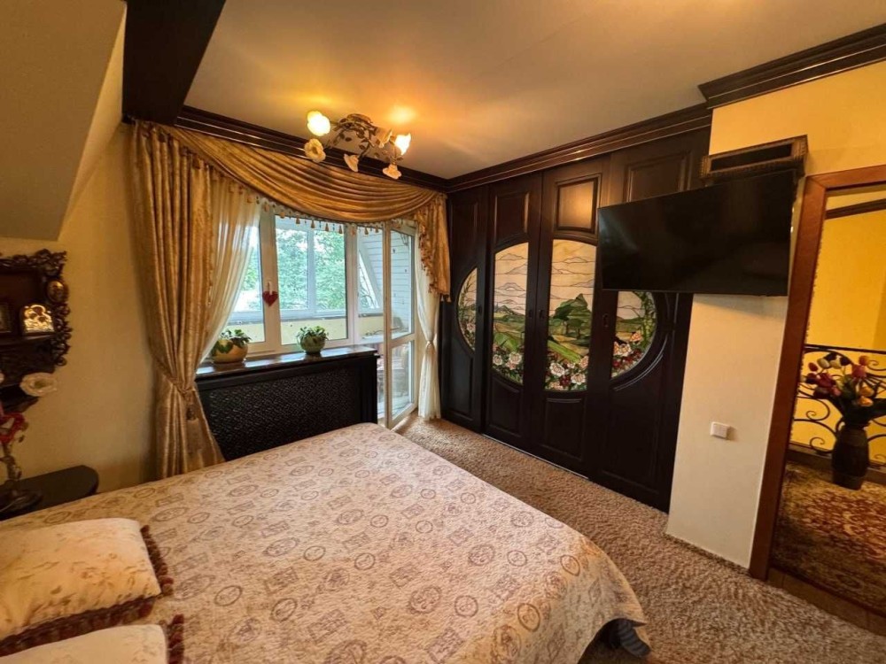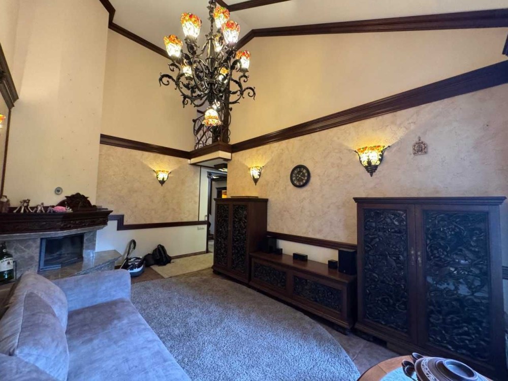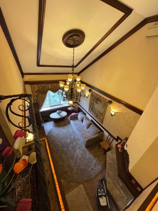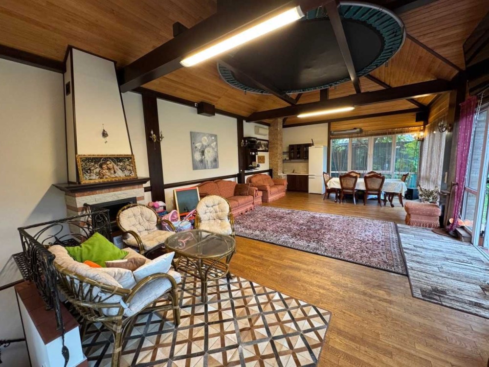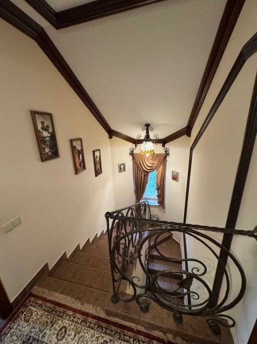Меблі та оформлення будинку виконані з цінних порід дерева, натурального каменю, вітражі, кування, 100% ручна робота за індивідуальним замовленням, якісна побутова техніка - пральна і сушильна Bosch та сантехніка, 2 інверторних кондиціонери в основному будинку і 2 в гостьовому, дорогий текстиль Houles.
