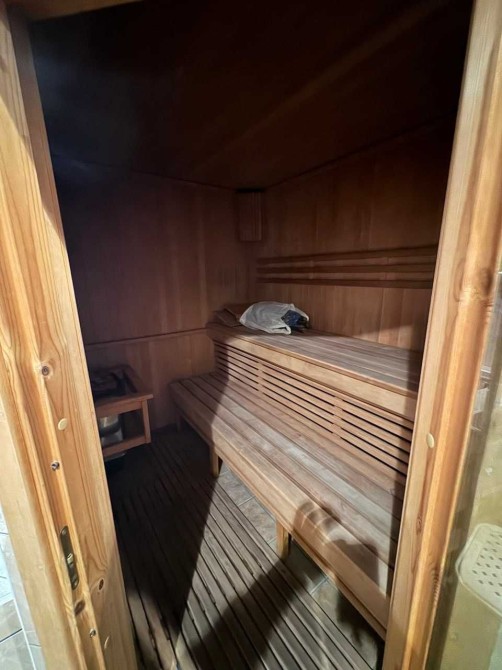 Основний будинок - 130 м2 - 2 поверхи, велика вітальня з каміном, кухня, 2 спальні + кабінет (може використовуватися як спальня або дитяча), вбиральня, 2 с/в, сауна + купіль, засклена тераса.