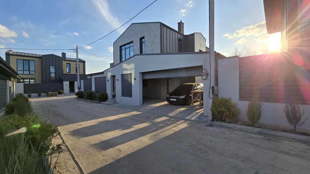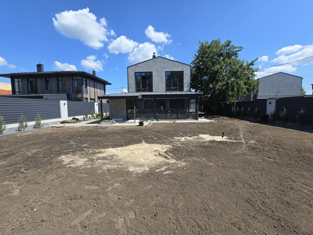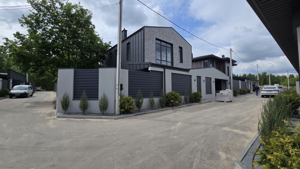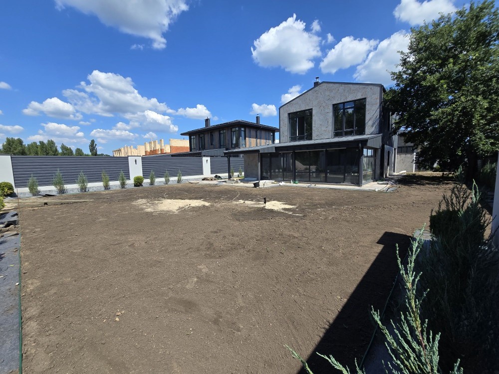 Ділянка 8 соток землі. Автополив. Автоматичні ворота, електричні гаражні ролети. Просторий гараж для 2 машин. Упорядкована територія. Паркан по периметру. Озеленення.