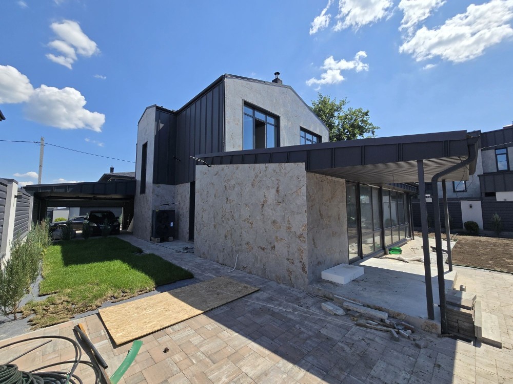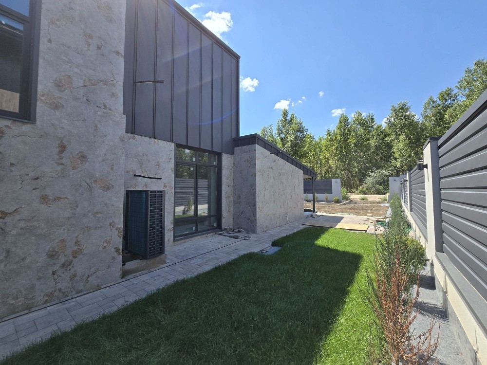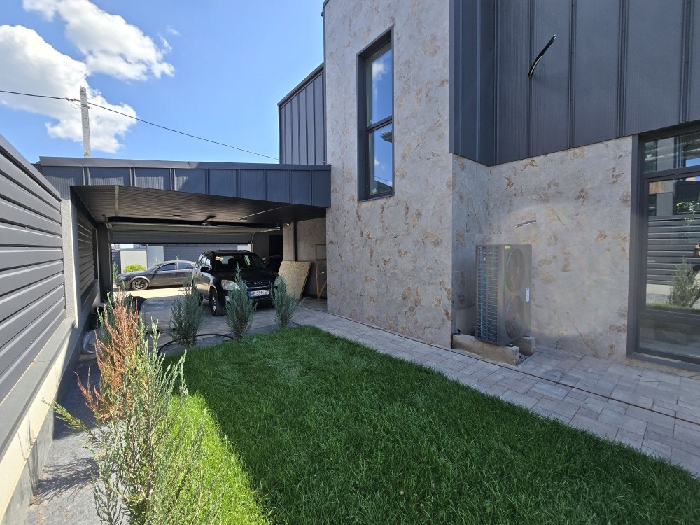 Усі комунікації: Світло 3 фази. Своя вода – свердловина. Каналізація - септик. 2 отоплення: 1. Тепловий насос. 2. Камін з розводкою отоплення в кожну кімнату. Водяна тепла підлога. Дах металочерепиця. Утеплювач 25см, базальтова вата. Вікна склопакети Рехау Німеччина. Стіна 38см керамічна цегла + 15 см утеплювач + фасад плитка.