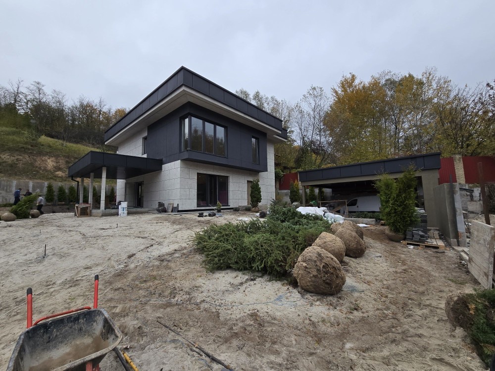 Ціна 420 тис уо. під чистове оздоблення з озелененням газон автополив.