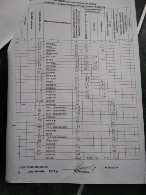 - Житловий будинок: 289,4 м². (задокументованих)