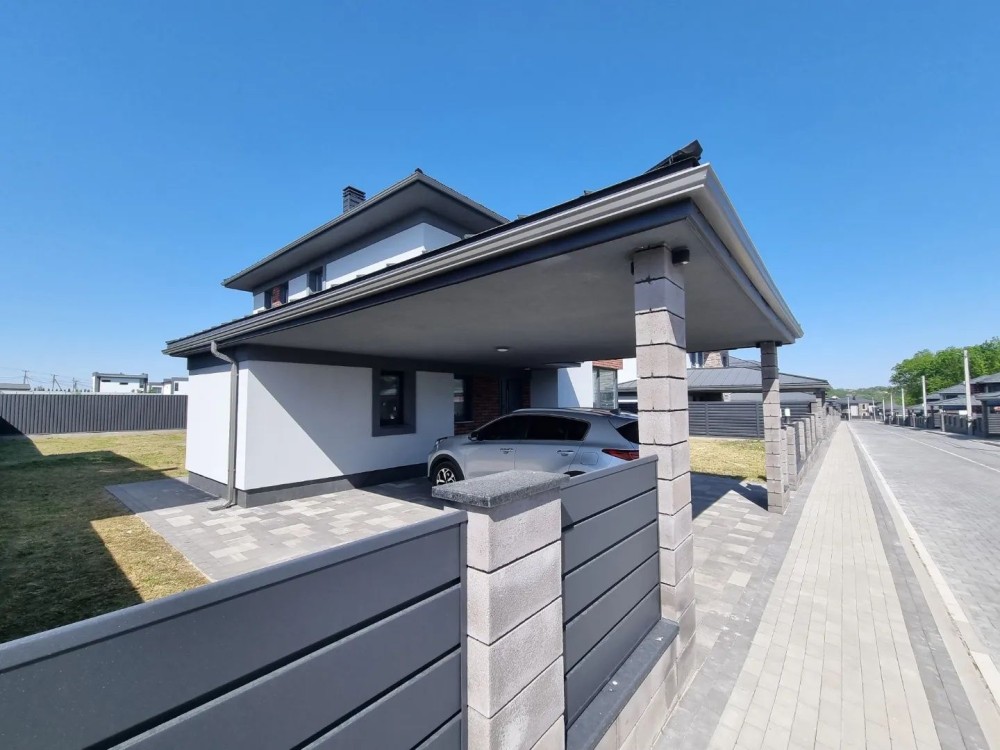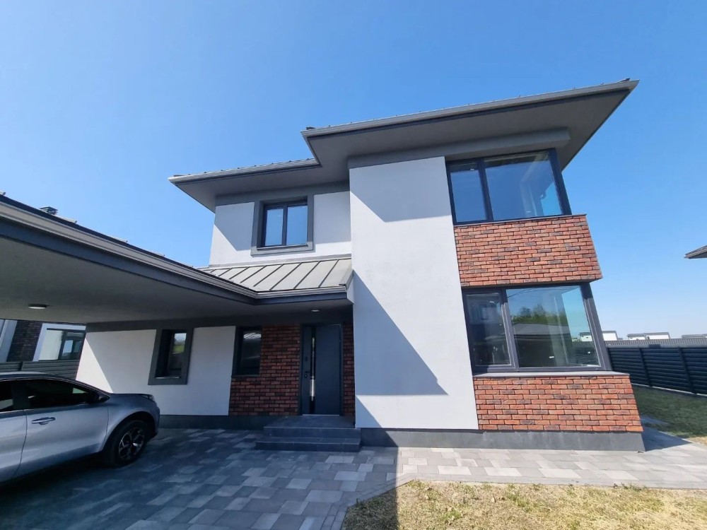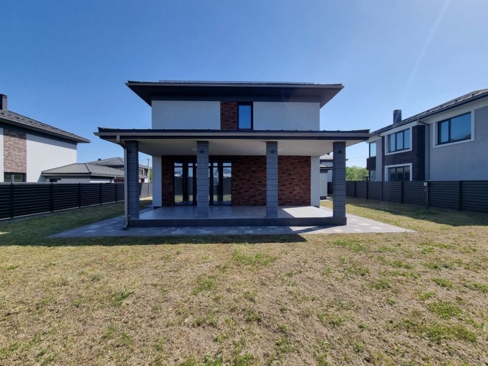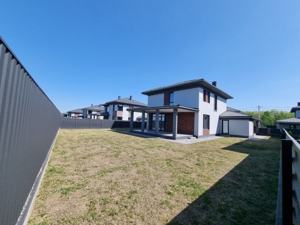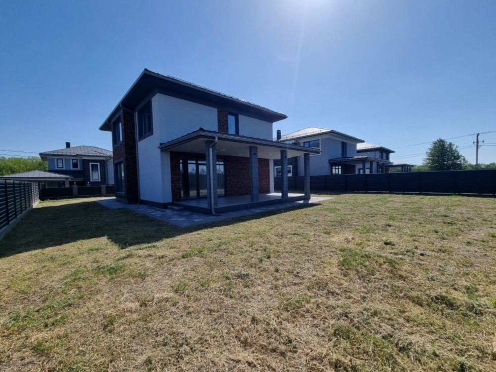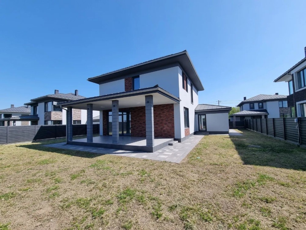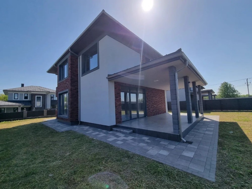 Загальна площа будинку #5 200 кв. м. з терасою + 40 кв.м. навіс для машини під чистове оздоблення. Будинок #14 збудований з червоної цегли, утеплений пінопластом 150 мм. Перекриття - монолітні, дах - Фальцева покрівля, утеплення базальтова вата 200 мм, монолітні ж/б сходи. Стіни оштукатурені машинною штукатуркою під чистове оздоблення. Вікна Саламандер із профілем 70 мм. 1 поверх - хол, простора кухня, вітальня з виходом на терасу, спальня, сан.вузол, котельня, кімната для інвентарю (госп.блок). 2 поверх - 3 спальні, гардеробна, 2 сан.вузол.