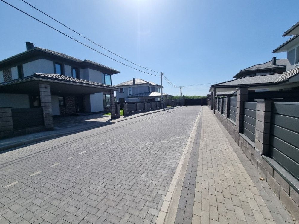 Комунікації: вода – свердловина 60 м., Електрика – 18 кВт., Каналізація септик – 12 куб. Підключений інтернет та сигналізація. У котеджному містечку 2 в'їзди, 24 на 7 охорона, загальний спортивно-дитячий майданчик, асфальт, тротуар буде у плитці, освітлення, озеленення.