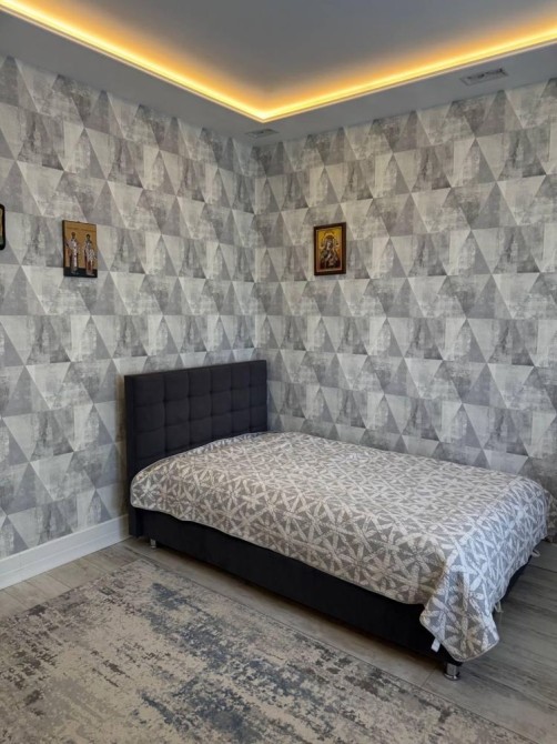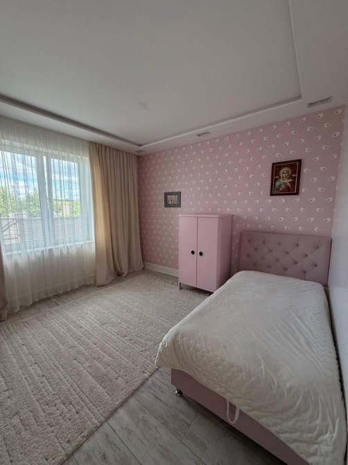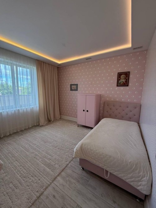 Будинок з якісним ремонтом, меблями, підігрівом підлоги по всій площі та утепленим дахом. Прихожа з великою шафою, три окремі кімнати: батьківська спальня 16 м² та дві дитячі по 14,5 м². Санвузол 7,5 м². Простора кухня-вітальня 35 м² з каміном, обідньою зоною, вмонтованою кухнею та всією побутовою технікою. Є тех.кімната на кухні (котельня,пральня).Вихід на заднє подвір’я та тераса з виглядом на зелений двір, обладнана автоматичним маркізом.
