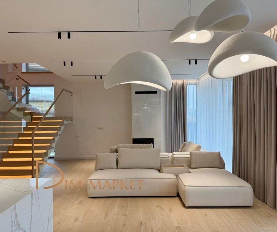 Планування: велика кухгя вітальня з каміном та виходом на терасу, 4 кімнати, 3 санвузли, декілька гардеробних та тех.приміщення