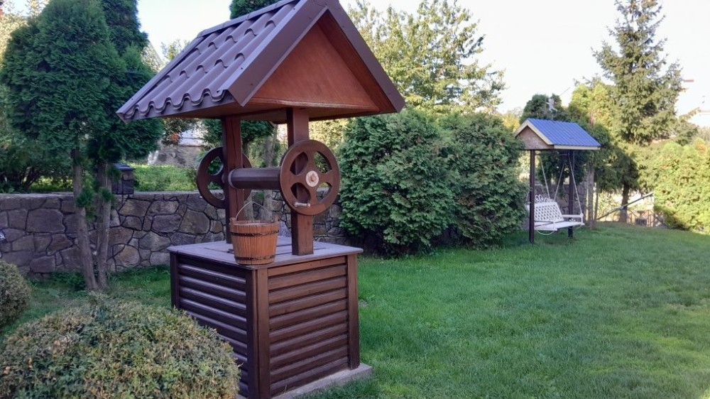 Каменні споруди з великим піднавісом для авто.
