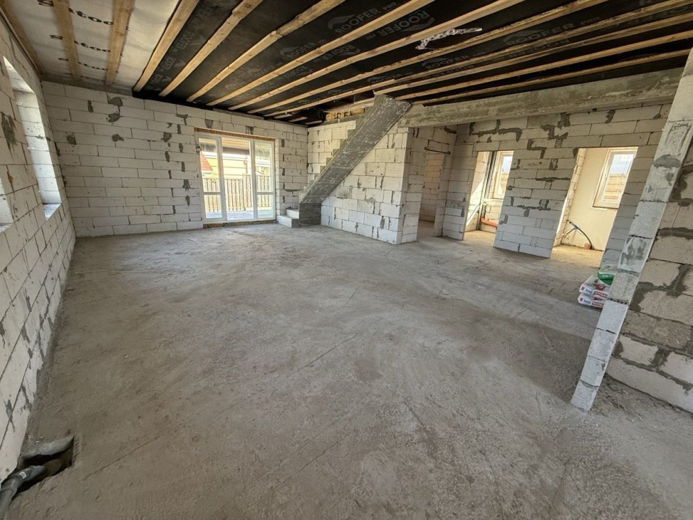 Сучасний двоповерховий таунхаус з власним двором та паркомісцем в с. Зазим'я. Просторий та комфортний будинок, який стане ідеальним місцем для життя вашої родини. Планування та площі: – Перший поверх — 54 м2; – Другий поверх — 55 м2; – Можливе індивідуальне планування під ваші побажання; – Власний задній двір від 0,6 до 1,5 сотки; – Місце для паркування авто; Комунікації: – Власна свердловина у кожному будинку; – Переливний септик; Терміни: – Здача об’єкта — кінець серпня; Локація: – 500 м до супермаркетів АТБ та Фора; – 1 км до школи та нового дитячого садочка; – 500 м до лісу; – 5 км до річки Десна; Будівництво та матеріали: – Стіни з піноблоку D500 (товщина 300 мм); – Утеплення стін — пінопласт 100 мм; – Перекриття — залізобетонні плити; – Бетонні сходи на другий поверх; – Дах утеплений мінватою 150 мм, покрівля з металопрофілю; – Пластикові енергозберігаючі вікна;