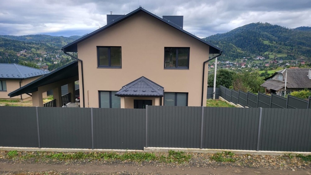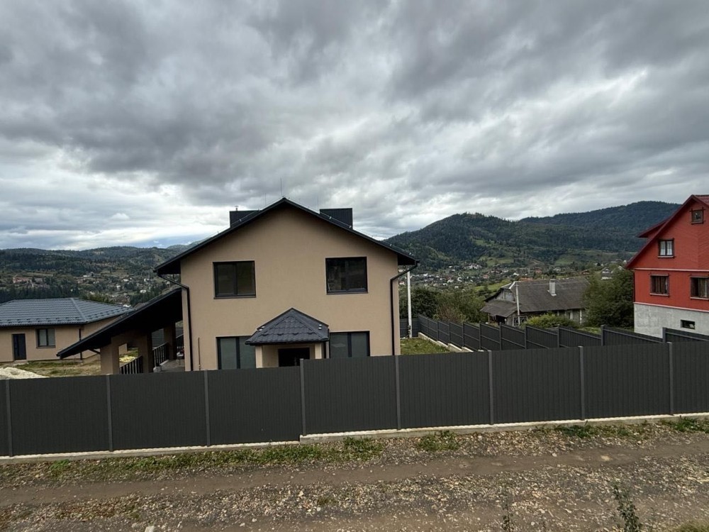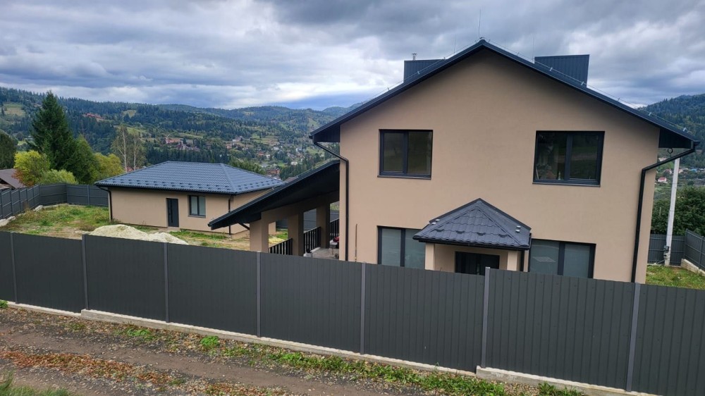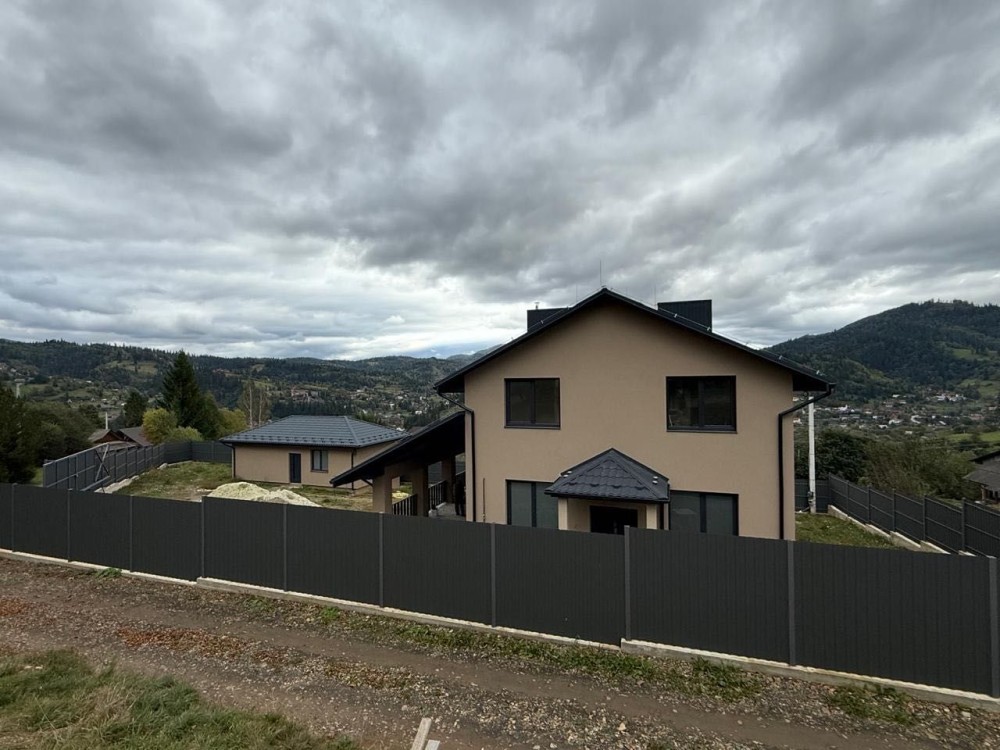 Продається будинок в смт. Славське. Загальна площа будинку з гаражом 202 м2. Навіс під машину 40м2, тераса 55 м2, також на території гостьовий будинок площадею 45 м2. Площа ділянки 12.3 соток. Будинок утеплений пінопласт 150 мм, криша металочерепиця. По будинку зроблена штукатурка, стяжка, теплі поли, розводка сантехніки та опалення. Електроенергія 3 фази 16 кіловат, газ. На території своя скважена , скептик та дренажні ями. Вікна фірми ВЕКО. Більш детально по телефону