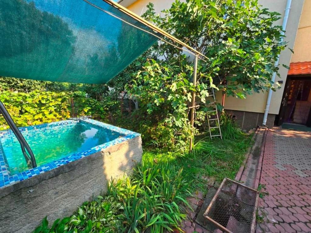 В центрі міста Ужгород продається 2-х поверховий будинок з окремими входами , що дає можливість проживати двом родинам незалежно, в будинку. На першому поверсі будинку дві кімнати, є камінний зал, велика кухня та їдальня, с/вузол, котельня, гараж. Під будинком є підвальне приміщення. На другий поверх можно зайти як з загального входу, так і є окремий вхід. На кожному поверсі є своя кухня, с/вузол. В дворі є ще один будиночок з житловою кімнатою, кухнею, баня та с/вузол. Є невеличкій басейн , щоб можно було охолонути після бані. Двір викладено бруківкою, є невеличкій сад. Розташування будинку чудове, неподалік є річка, школи, магазини, супермаркет.
