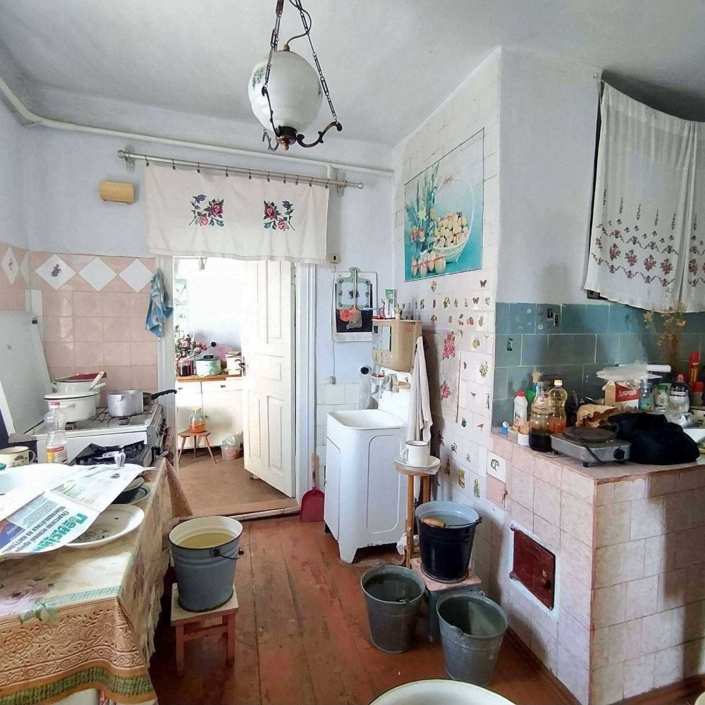Газифікований, є також дров'яні піч та 2 груби. Вода в будинок не заведена, туалет і колодязь на дворі.